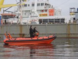 De volledig planerende diepe V-romp, voorzien van sprayrails en een 40° reverse chine, garandeert een droge en stabiele vaart onder alle omstandigheden. De romp van brandvertragend polyester vormt met het zelflozende dek één onverwoestbare eenheid. De boot wordt beschermd door ORCA Neoprene-Hypalon drijvers met vijf onafhankelijke luchtkamers voor maximale betrouwbaarheid en weerstand tegen chemicaliën, uv en slijtage. Ontworpen voor een bemanning van 4 en een totale capaciteit tot 12 personen, biedt de lay-out volledig situationeel bewustzijn. De achtergelegen console geeft de schipper maximaal overzicht, terwijl de 150 pk buitenboordmotor zorgt voor snelheden tot 30 knopen.